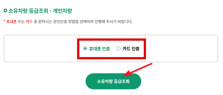 📌 스텝 1. 소유차량 등급조회