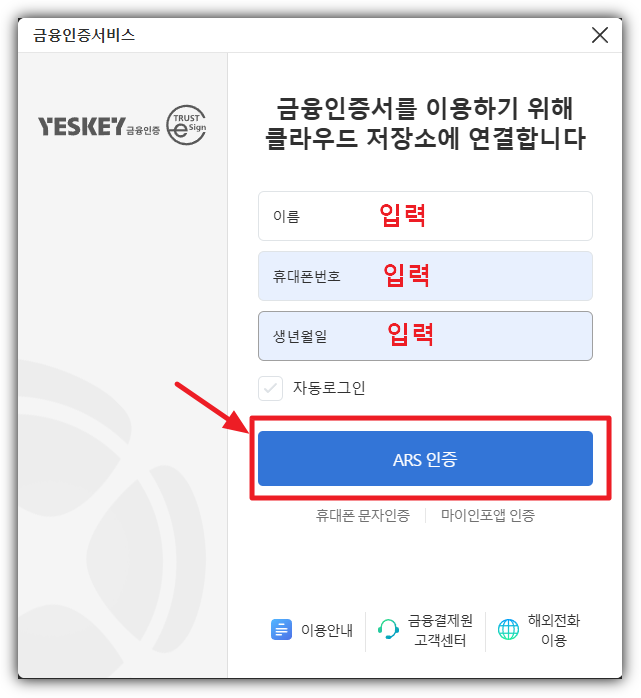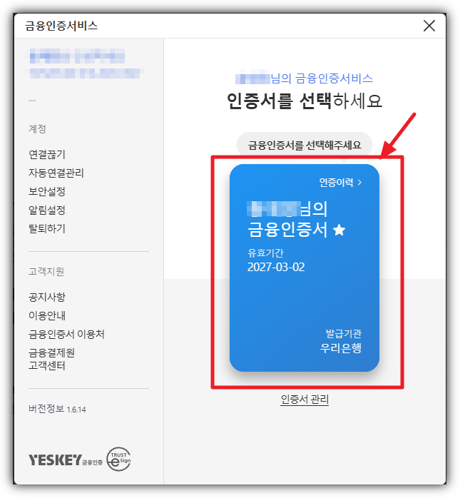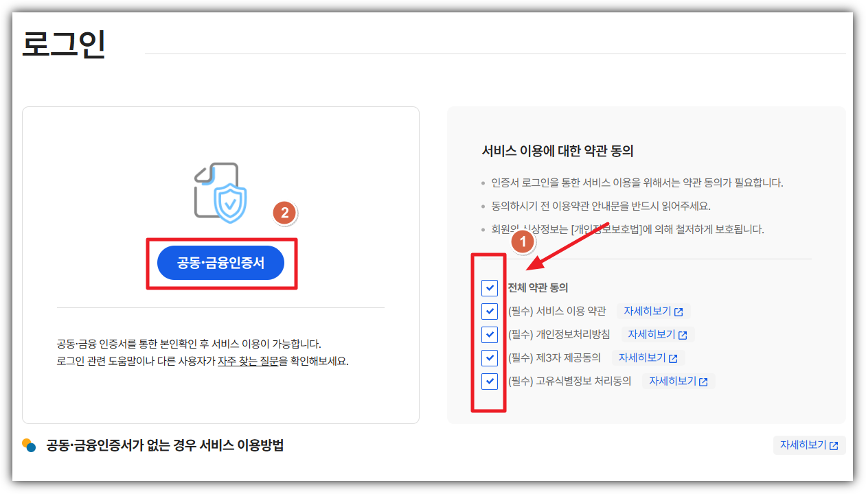 공동 또는 금융 인증서로 로그인 합니다. 저는 금융 인증서로 진행했습니다.