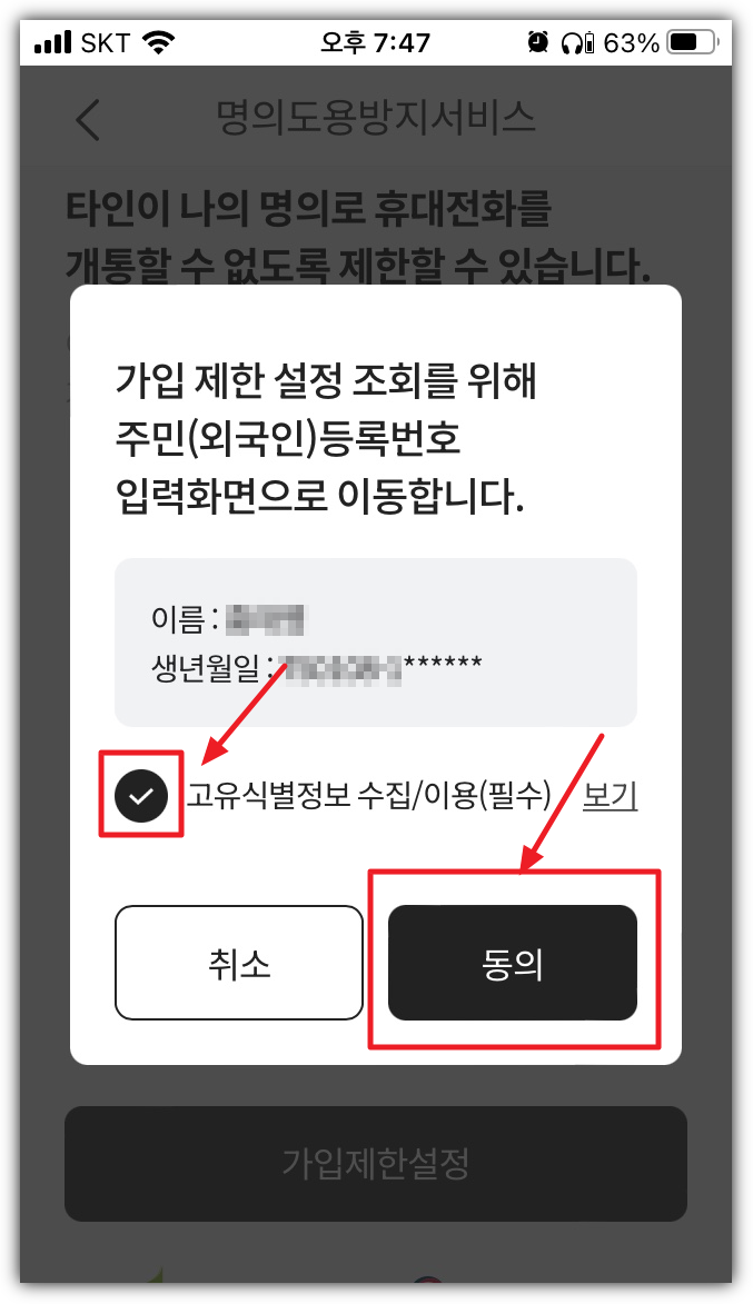 • 개통 차단 설정 시, 타인 명의 도용 개통 원천 차단