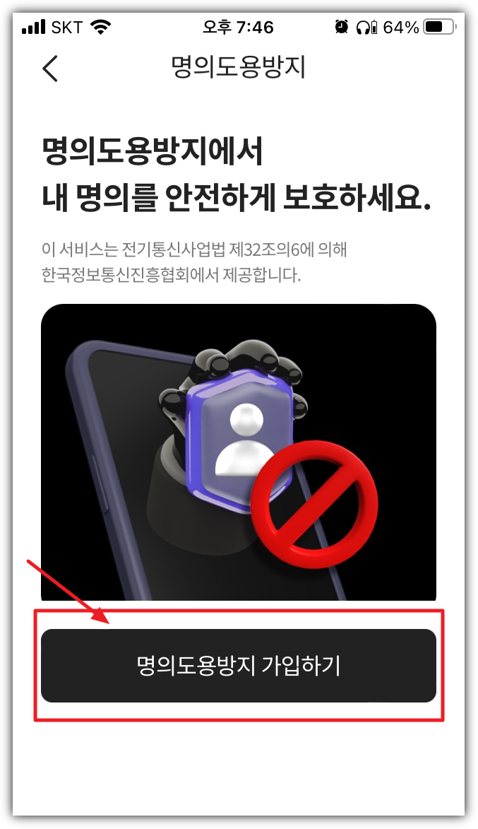 명의도용방지서비스는 통신사별로 자동 가입되는 것이 아니며, 직접 신청해야 효력이 발생합니다.