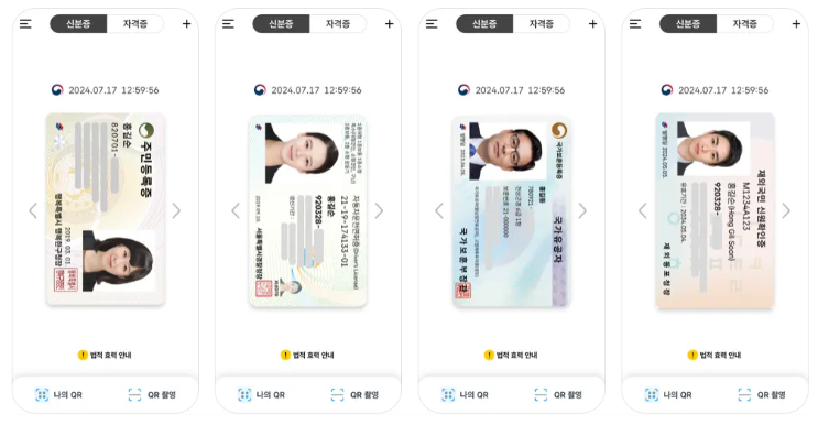 현재 발급 가능한 모바일 신분증은 다음과 같습니다.