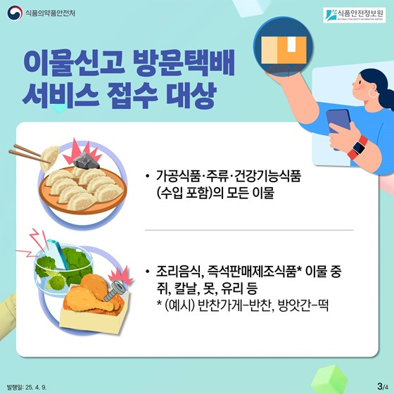 식품에 이물질이 나왔다면? 방문택배로 간편하게 신고하세요