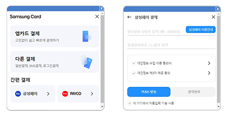 - 약관 동의 → 생체 인증(지문 등) 또는 결제 비밀번호 등록