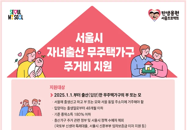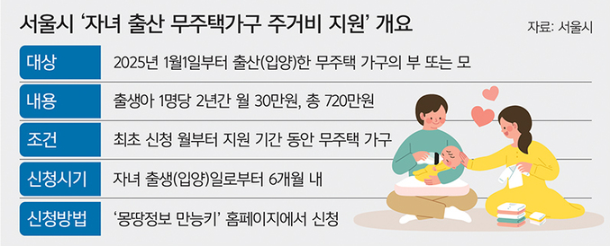 서울시, 무주택 가구 출산 주거비 지원! 월 30만 원, 최대 2년간 혜택을 놓치지 마세요.