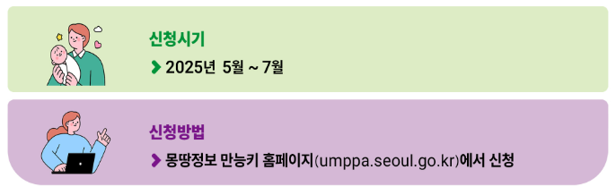 | 거주지 | 신청일 기준 신청자(부 또는 모)가 서울시에 거주하며, 자녀와 동일 주소지에 거주 |