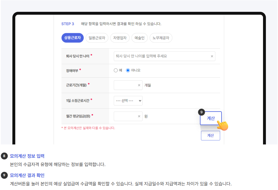 3. 모바일로 간편하게! 실업급여 모의계산기 사용법