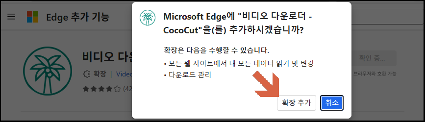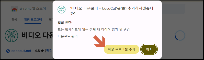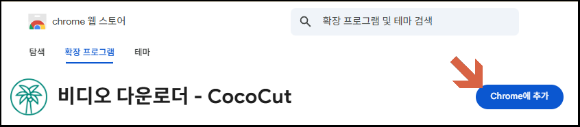 ‘Chrome에 추가’ 또는 엣지에서는 ‘Edge에 추가’ 버튼을 클릭하면 설치가 완료되고, 상단에 CocoCut 아이콘이 생성됩니다.