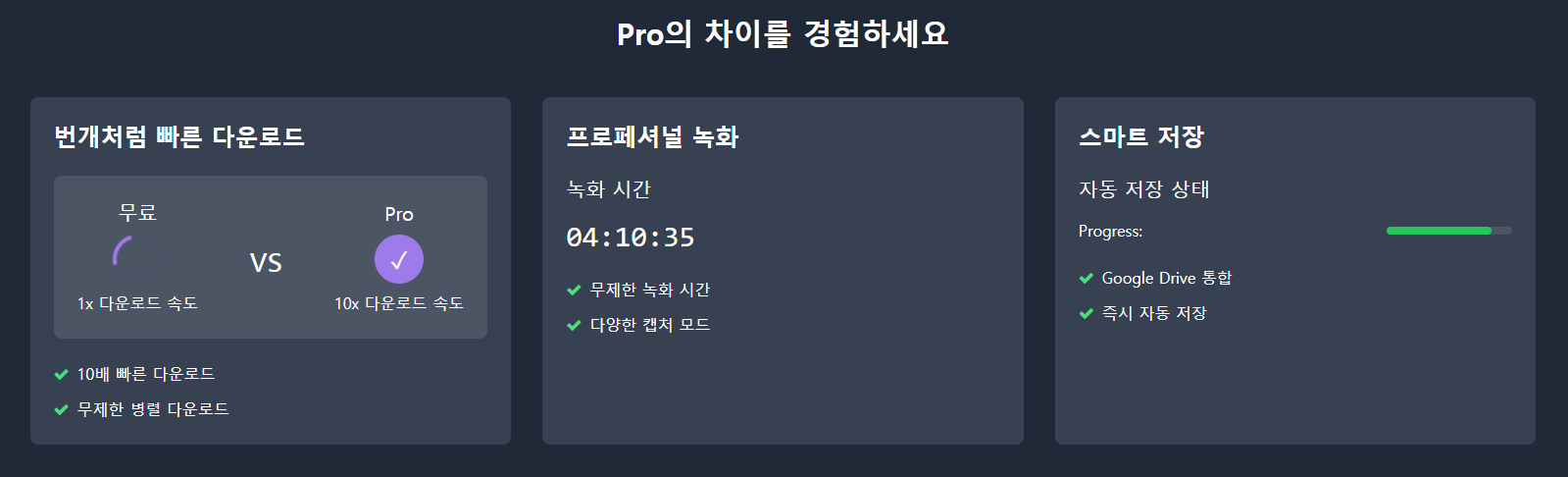 무료 버전만으로도 충분히 강력하지만, Pro 기능까지 활용하면 영상 저장의 완성도가 달라져요.