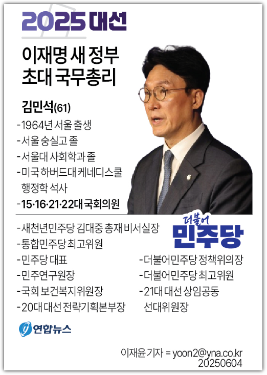 2025년 6월 4일, 이재명 대통령이 취임과 동시에 새 정부의 첫 국무총리로 김민석 더불어민주당 수석최고위원을 내정했습니다. 김 내정자는 선대위 상임공동선대위원장으로 이번 대선에서 핵심적인 역할을 했던 인물인데요, 전략과 기획에 강하다는 평을 받아 왔습니다.