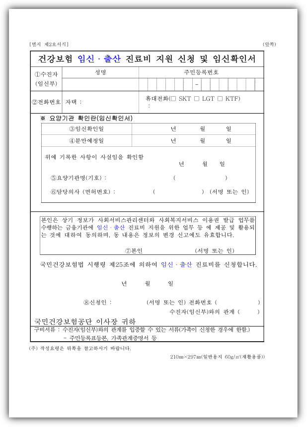 출산 후라도 2년 이내라면 신청 가능하며, 가족이 대리 신청할 수도 있어요. 임신확인서와 가족관계증명서만 있으면 됩니다.