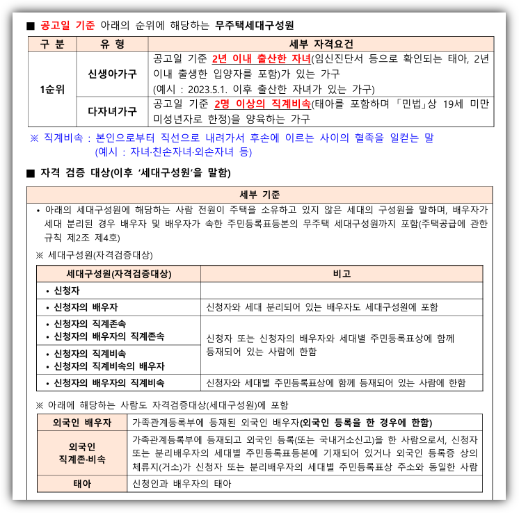 무엇보다 이 제도의 핵심은 소득·자산 조건 없이 무주택자라면 누구나 신청할 수 있다는 점! 신생아 가구, 다자녀 가구, 신혼·예비신혼부부는 우선 공급 대상이니 해당 조건에 해당하면 더 유리해요.