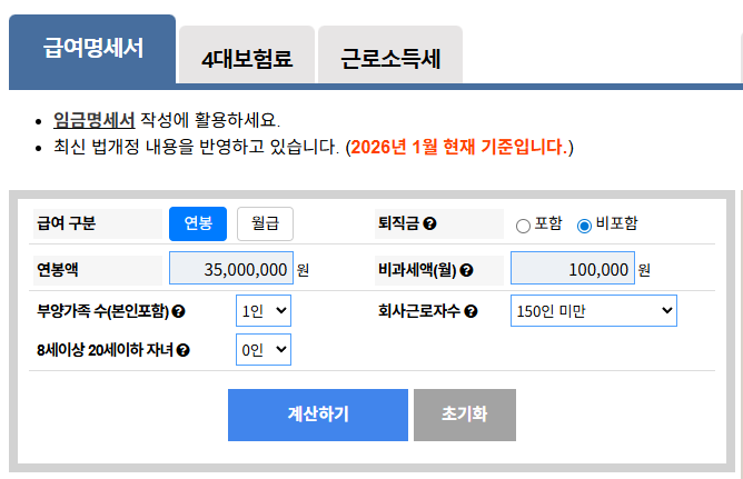 TIP 정확한 실수령액은 계산기를 활용하는 것이 좋습니다. 아래 추천 계산기를 참고하세요!