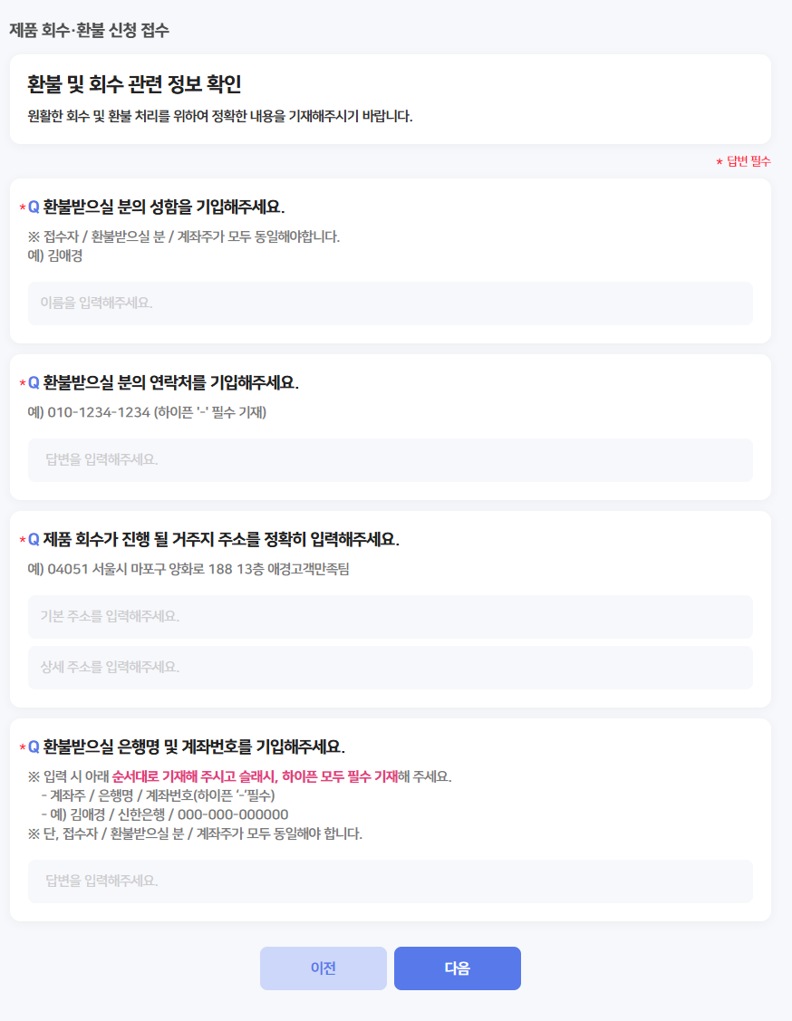 - ‘제품 회수·환불 신청 접수’ 버튼 클릭