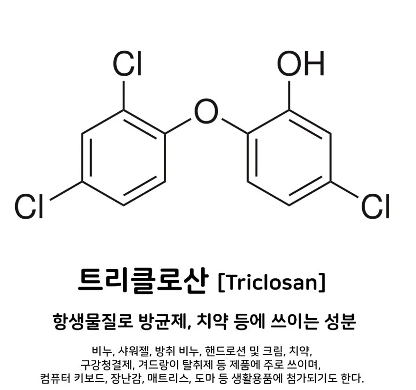 트리클로산은 인체에 위해성을 일으킬 수 있어 2016년부터 식약처에서 치약 등 구강용품에는 사용을 금지한 성분입니다. 애경산업은 자체 검사에서 해당 성분을 발견하고, 자발적으로 전량 회수 및 환불을 공지한 상태입니다.