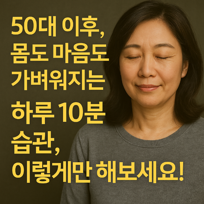 50대 이후 건강과 마음 관리를 위한 현실적인 하루 10분 루틴! 작은 습관이 인생을 가볍게 만드는 방법을 소개합니다.