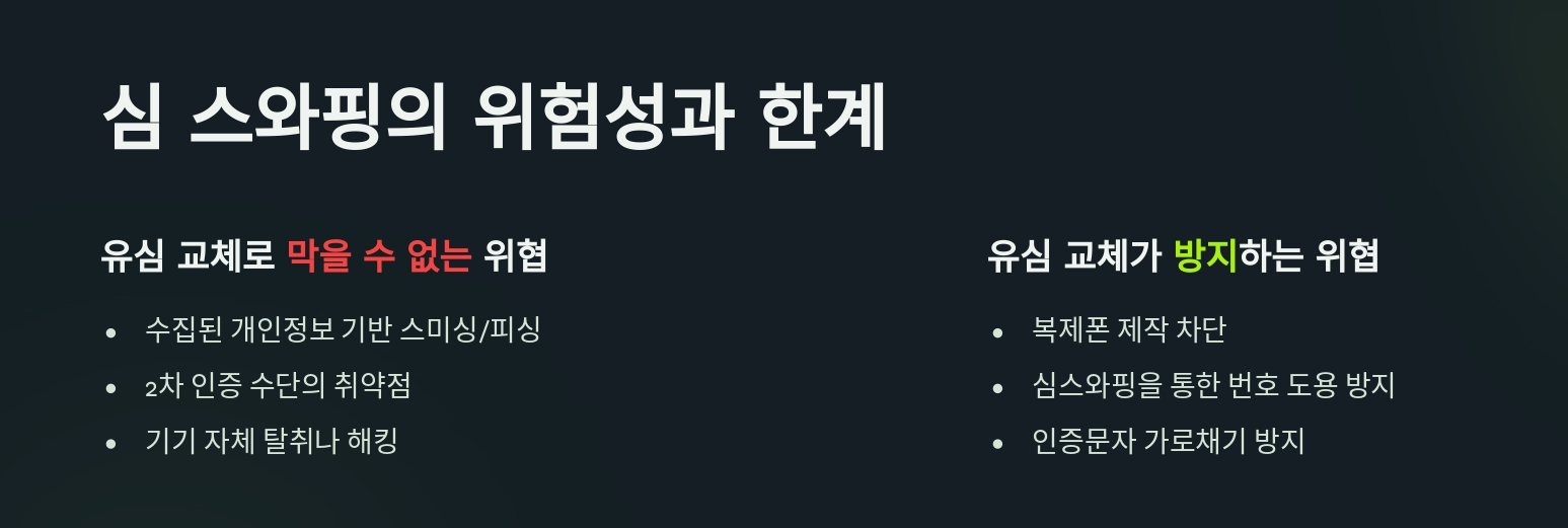 유심 교체가 실제로 막아주는 위협은 다음과 같습니다: